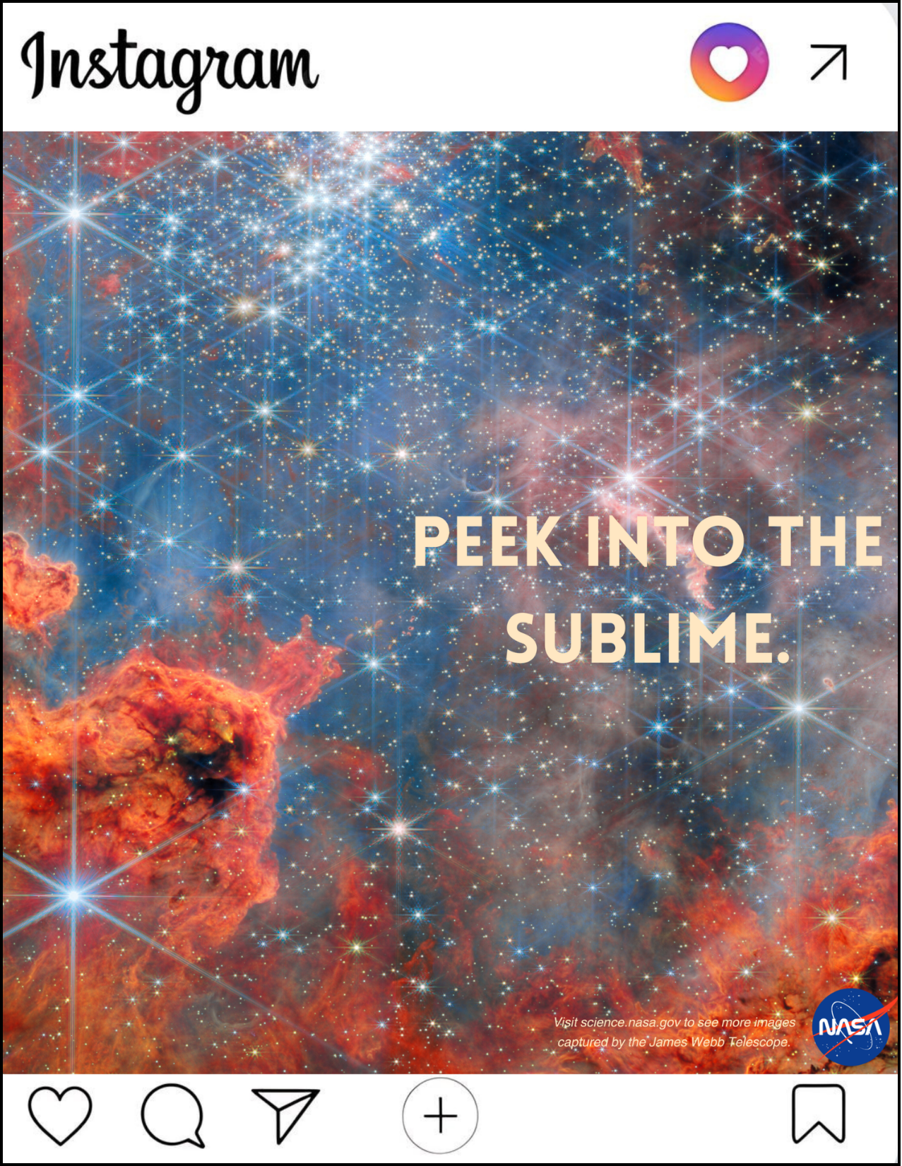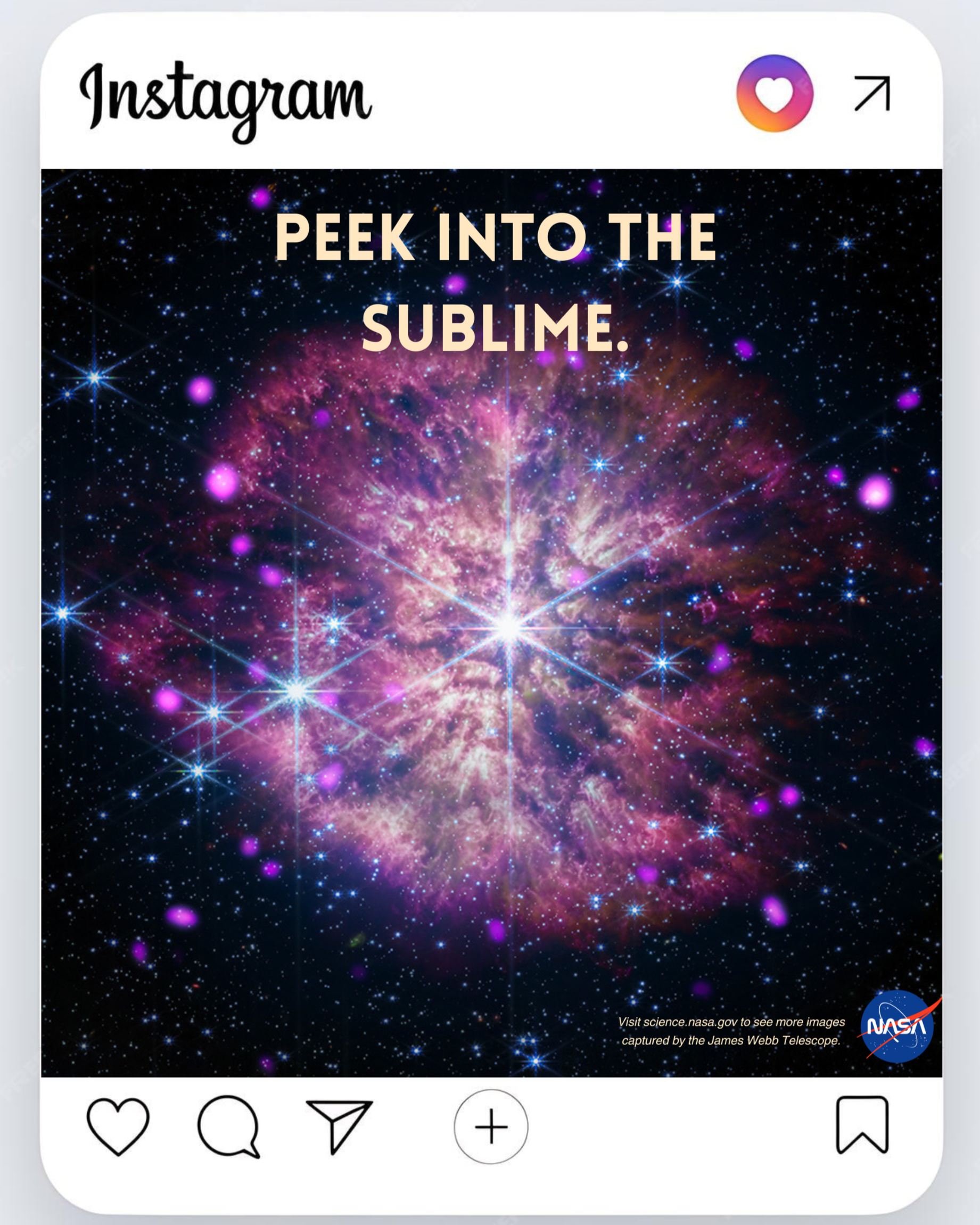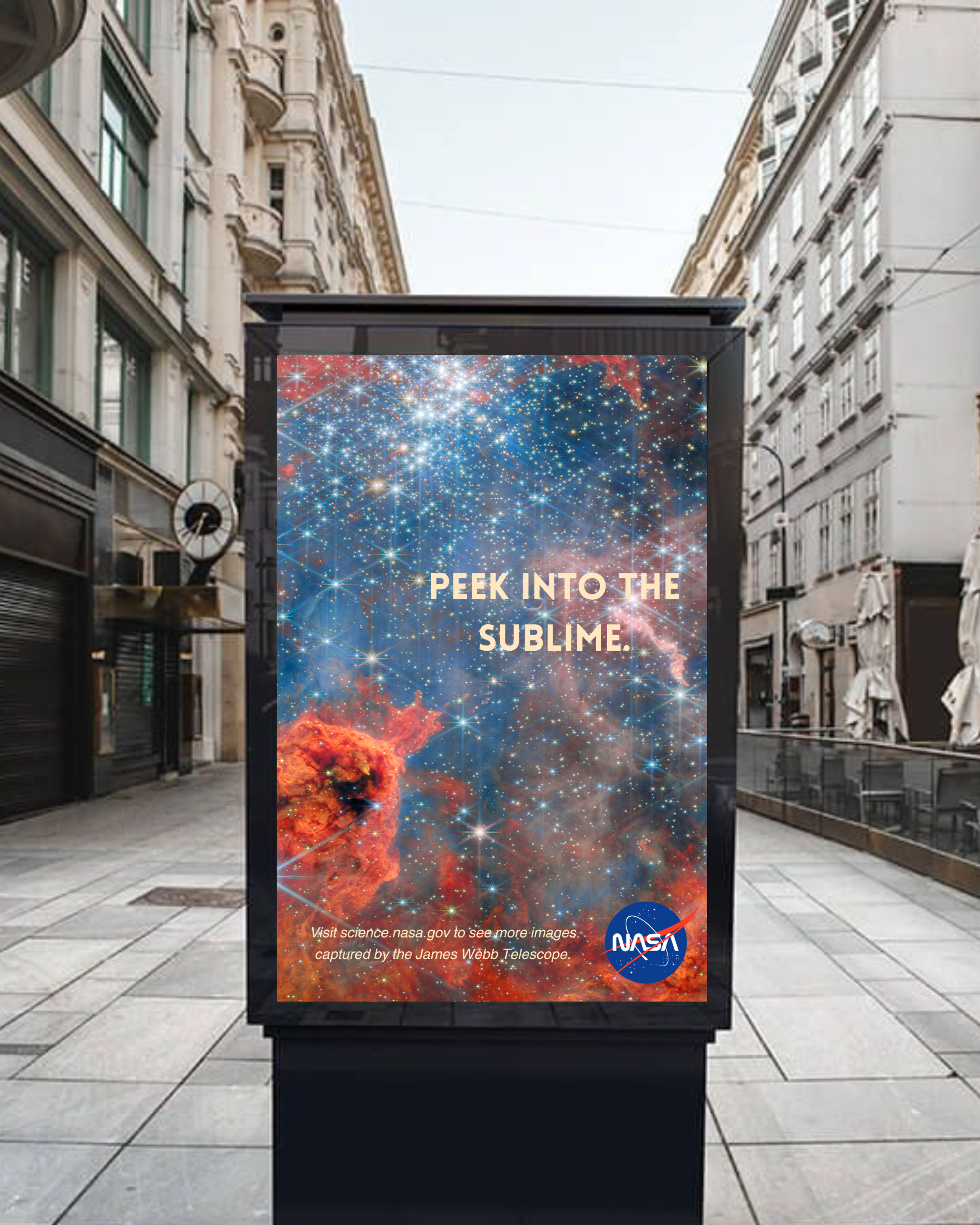 In this concept, images captured by the James Webb Space Telescope are showcased on Social and Out of Home mediums, with a call to action to increase web traffic to NASA’s official website.