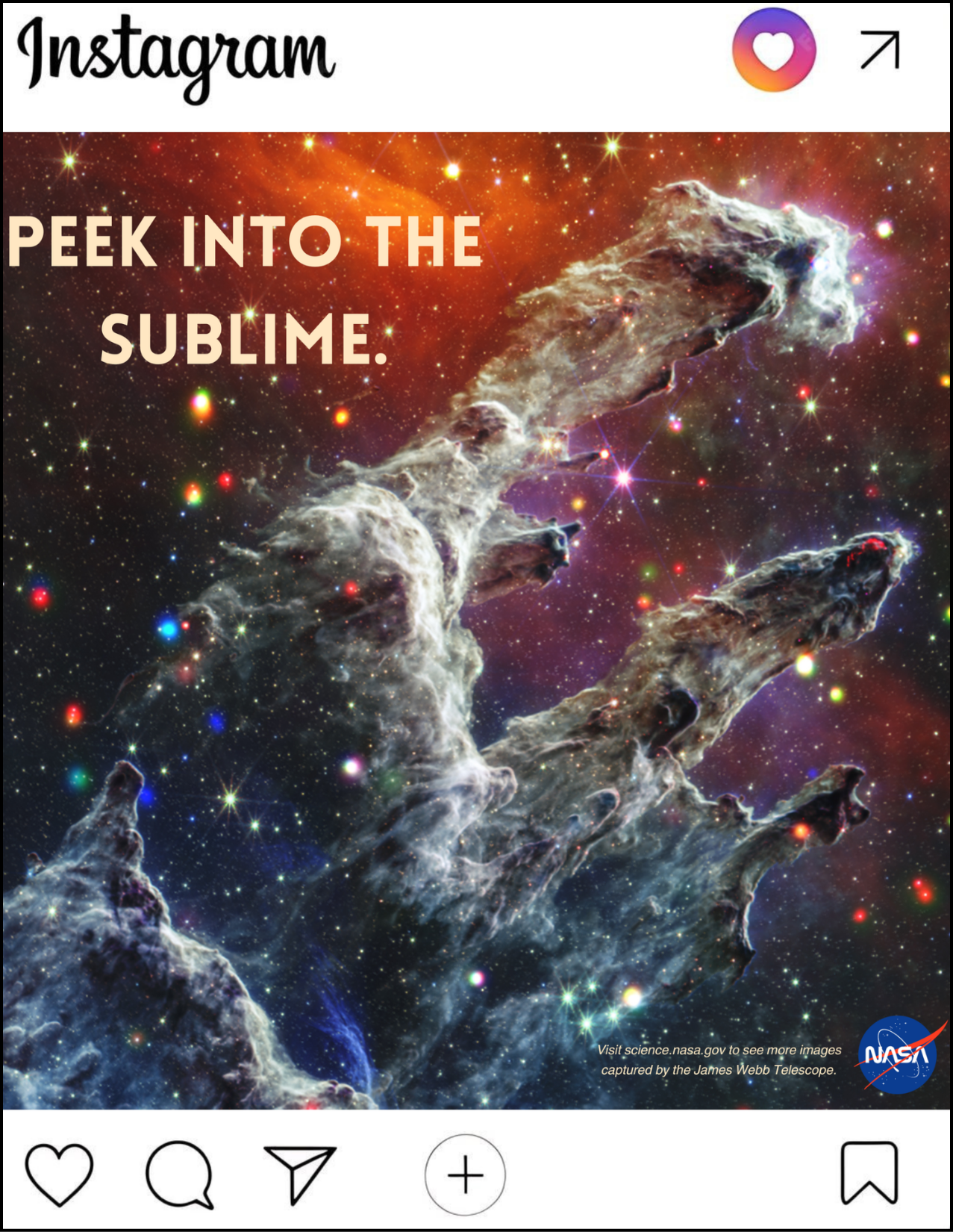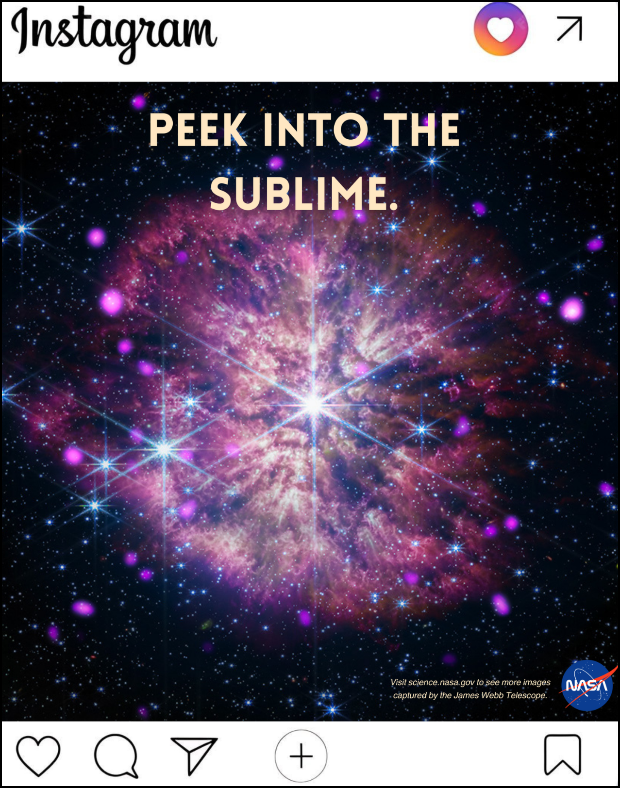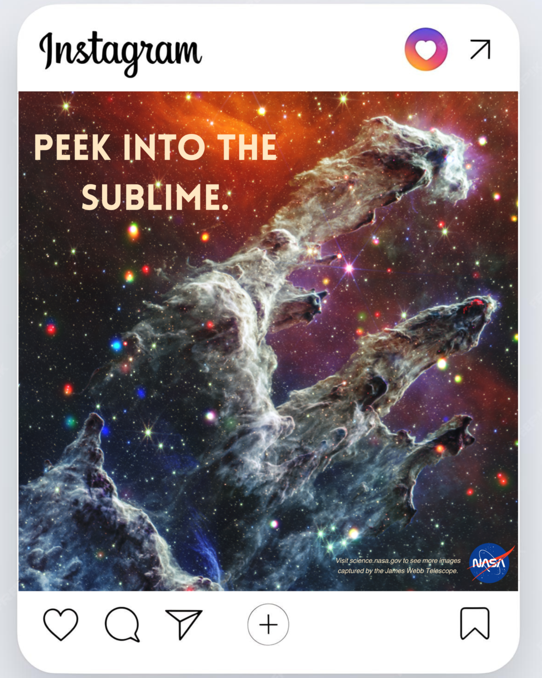 In this concept, images captured by the James Webb Space Telescope are showcased on Social and Out of Home mediums, with a call to action to increase web traffic to NASA’s official website.