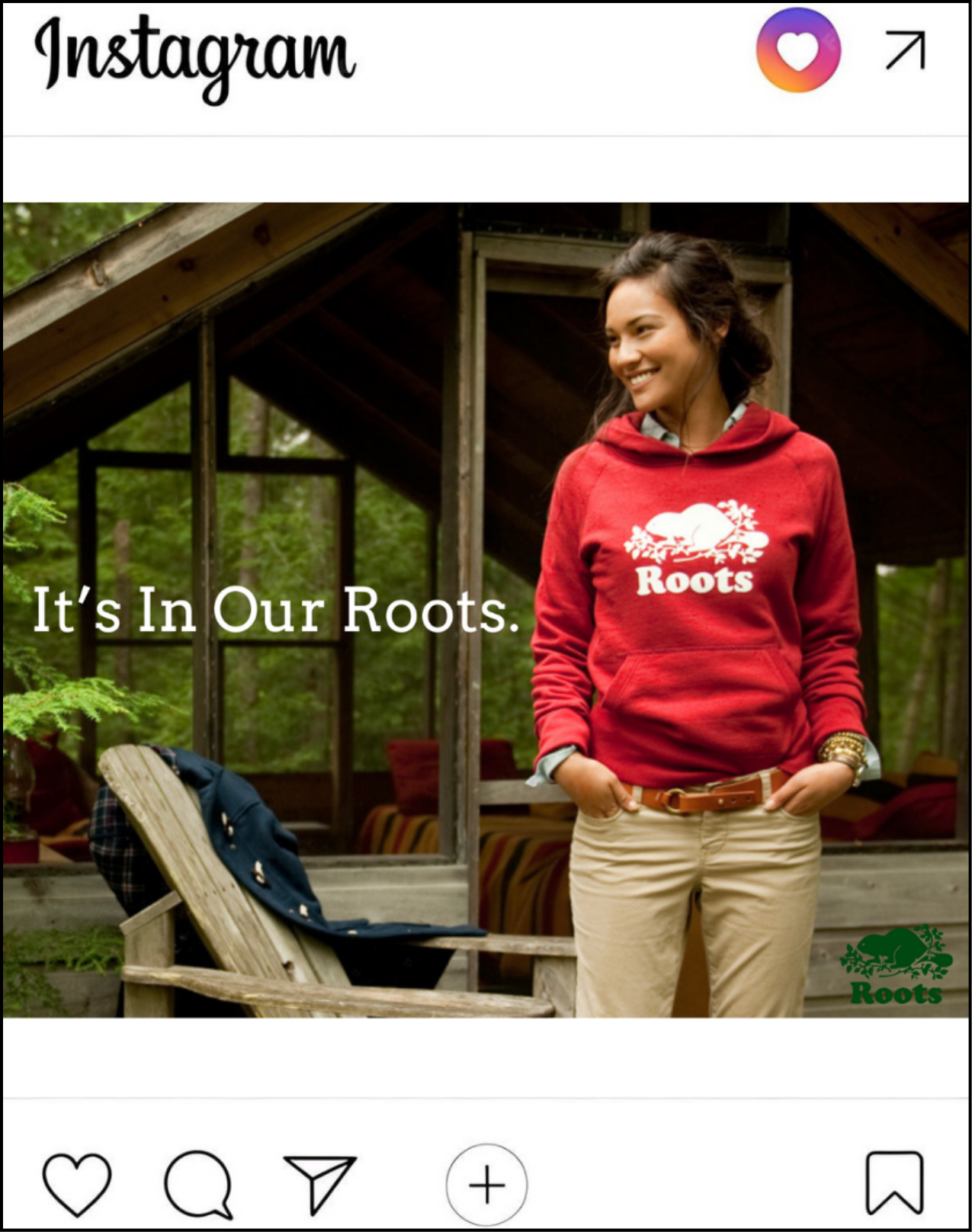 In this concept, Roots Canada Social in-feed Instagram posts, in addition to Out of Home billboards, are leveraged to intercept both mall-goers and online traffic which fall into their target audience.